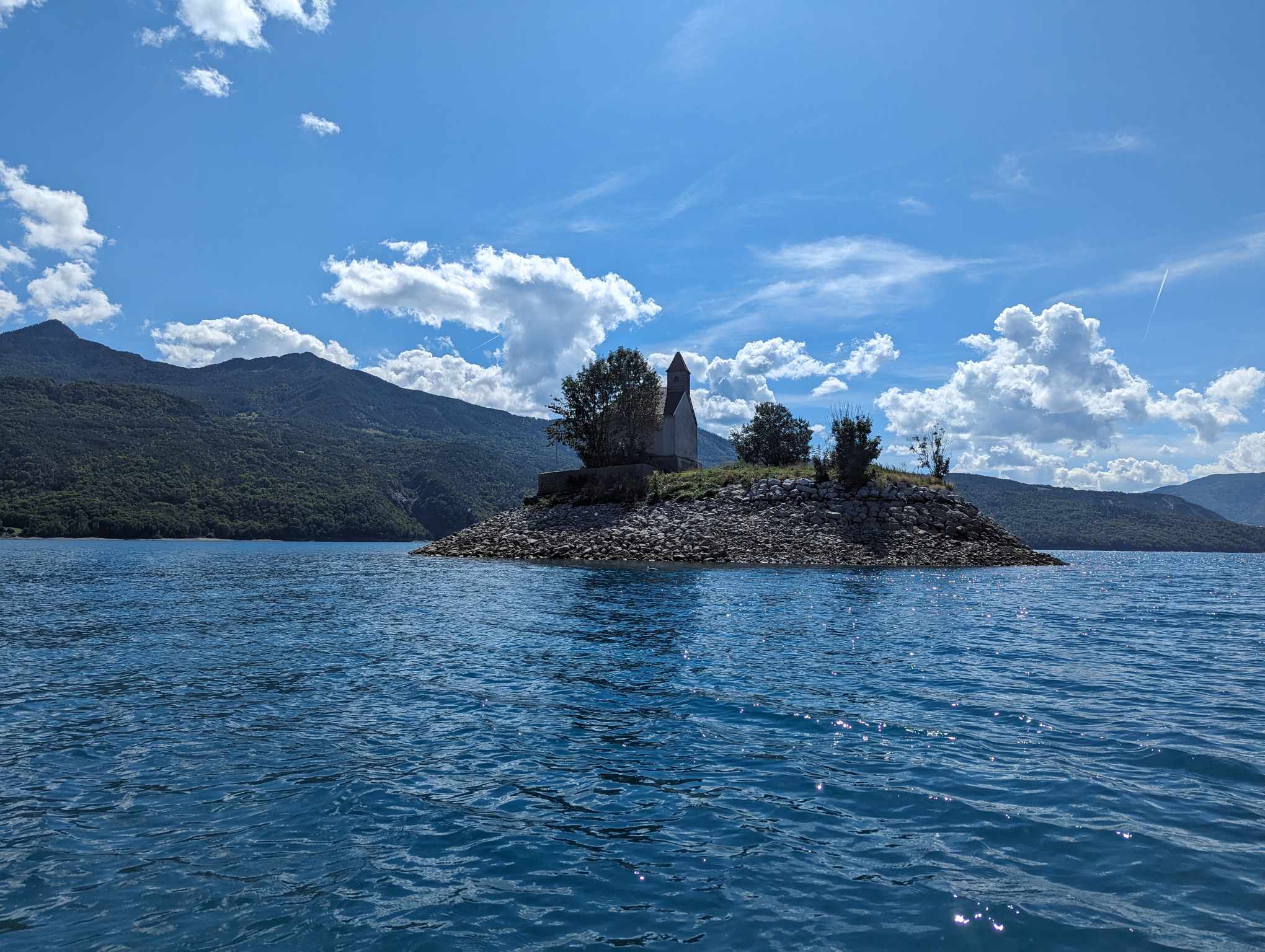 Posté le 22/07/2022 à 11:28"!!!!! Contrairement à ce que l’on peut entendre il est toujours possible de faire du bateau sur le lac de Serre-Ponçon ! Nous venons de passer un après-midi fantastique entre baignade soleil et superbe bateau.! Venez, c’est parfait. 😍😍😍"