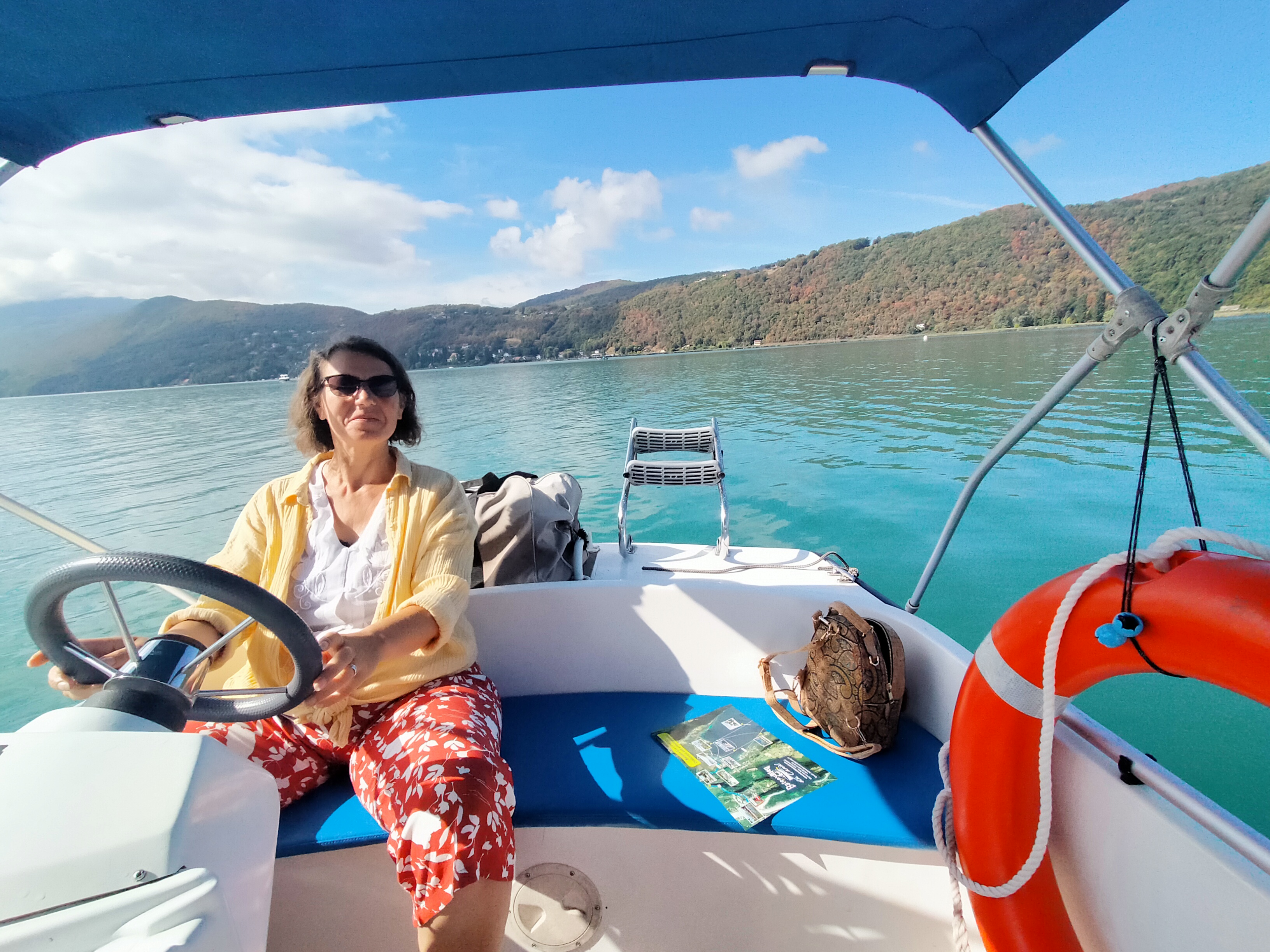 Un pilote au top. Le canal n'a plus de secret, ni le lac du Bourget. Passage de l'écluse qui relie le canal au Rhône. Sur le lac, aperçu de loin de la statue d'Alphonse DE LAMARTINE