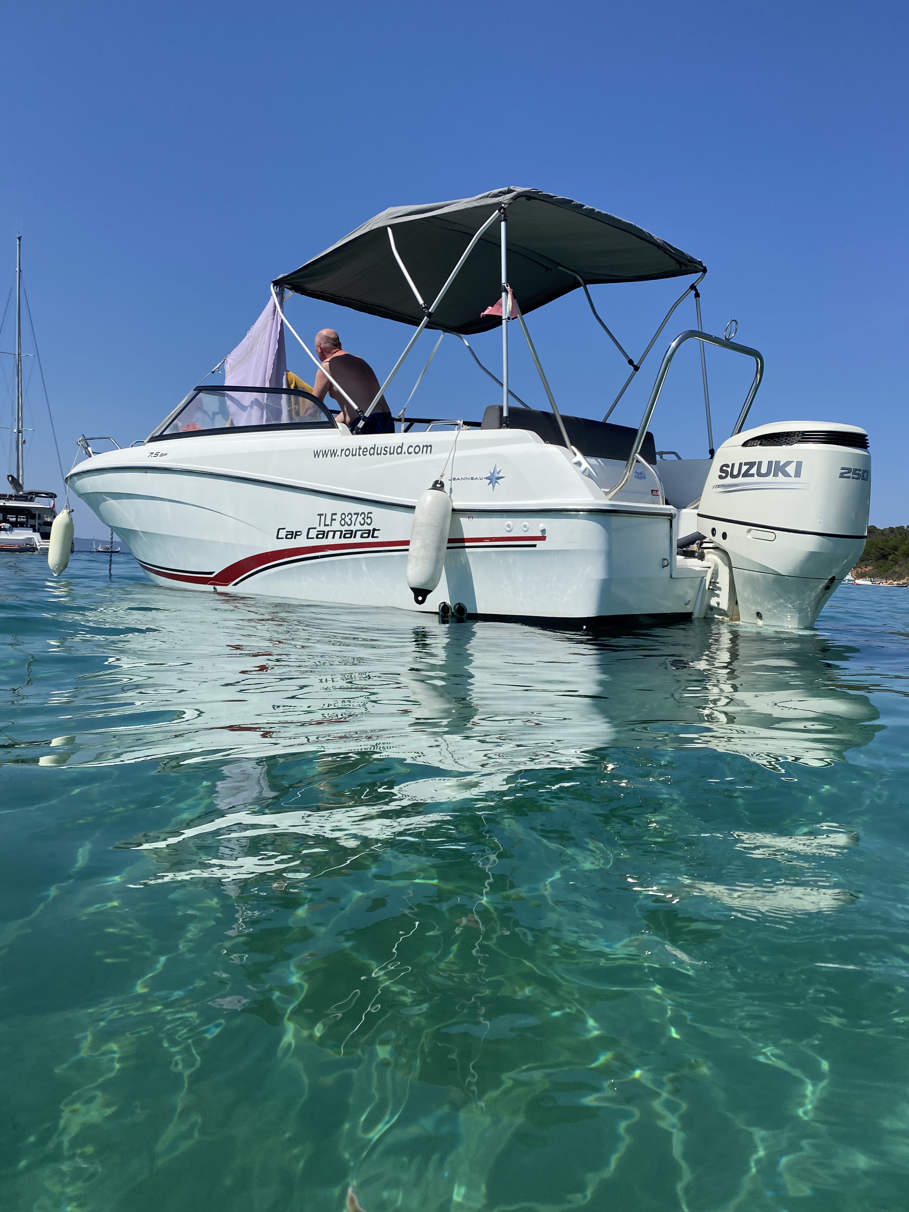 Nous avons passé le 21 juin une journée magique. Le Cap Camarat flambant neuf de 7,50 m était parfait pour 8 personnes. Le sourire, le professionnalisme de Nicolas, et de son équipe au ponton, y sont pour beaucoup. Pas une fausse note. Nous habitons Hyères et louons depuis plusieurs années aux routes du sud . Désormais plus question d'aller ailleurs. Et avec Nicolas il y a toujours un petit plus, un petit geste , un avantage qui vous fidélise à jamais.