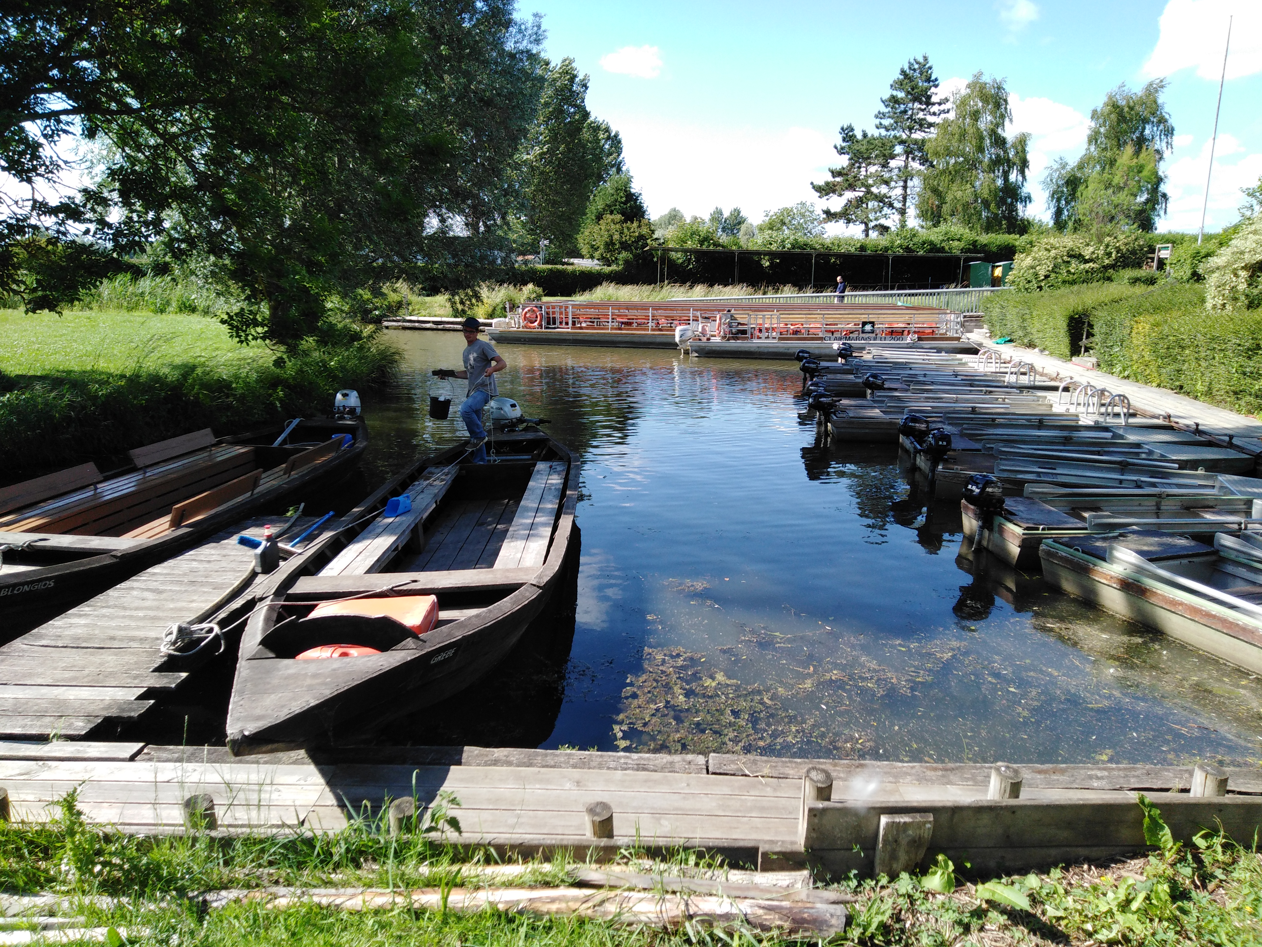 Joli endroit pour faire une balade en bateau ( moteur, électrique, rame ou en groupe) d une heure . La visite est commentée pour le bateau en groupe par un jeune homme du marais qui nous a bien tout expliqué. C est très intéressant. Bravo également à la personne qui navigue le bateau sous les petits ponts ,belle dextérité. Après la balade , nous avons pris une glace et boissons seul bémol des guêpes sur les terrasses mais que faire ? Je recommande